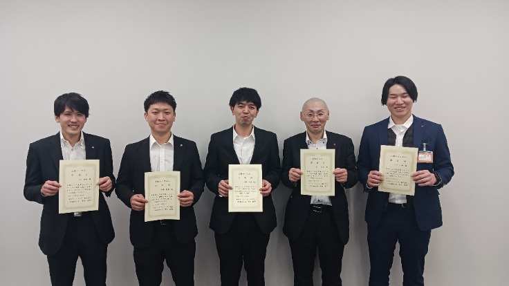 上級マイスターの認定試験が実技・筆記試験を11月8日に青森工場で、役員面接を12月3日に東京支社で実施し、当日合格者5名に認定書が手渡されました。マイスター制度とは確かな技術と幅広い知識を測るための当社の認定制度で、合格者はマイスターとして従業員を指導し、会社の発展に貢献します。今回の5名を含めた総勢22名の上級マイスターが後継者の育成や現場力の向上に努め、次世代に技術を伝承する役割を担っていきます。